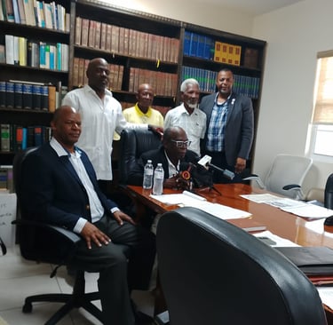 Forging a strategic alliance. Immediately following their election, the new BALS Council stands with the Trade Union Congress (TUC) during its first press conference on September 26, 2025. This event signaled a new era of advocacy and solidarity, underscoring BALS's commitment to fighting for the rights and standards of all land surveyors in The Bahamas.